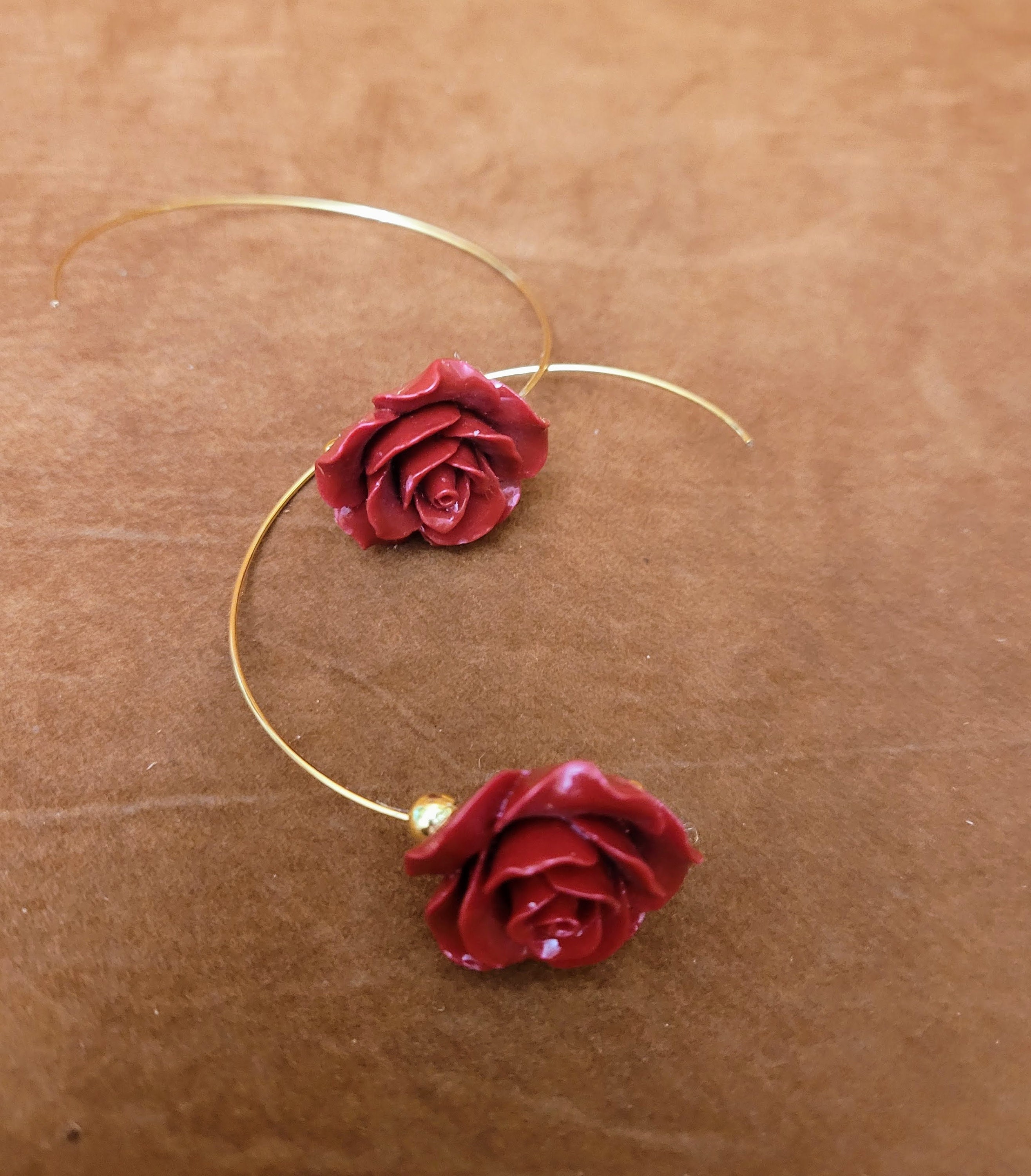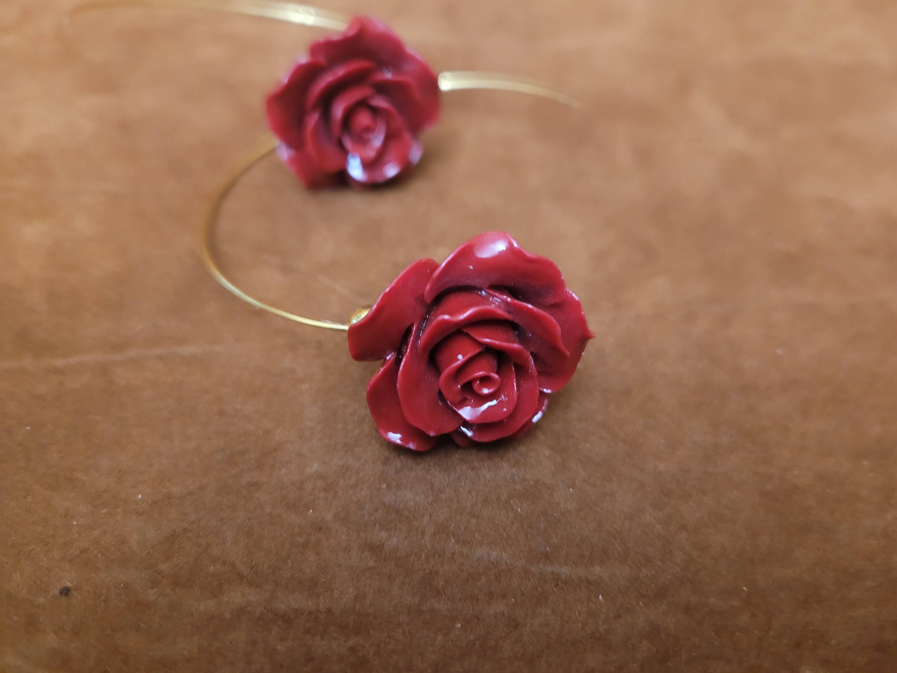 Large hoop earrings with roses. 60mm diameter approx. Sold as pair. Ideal love gift.