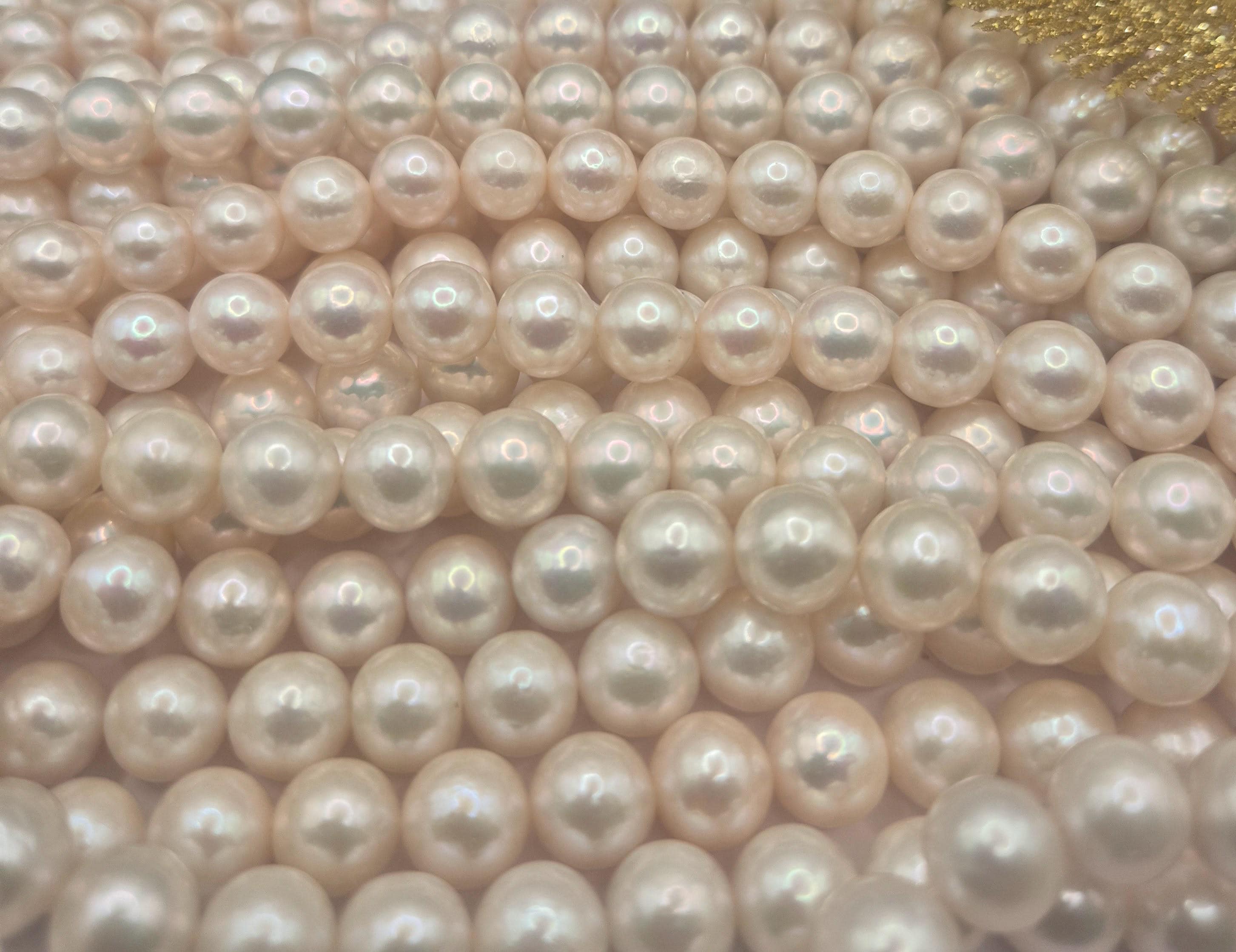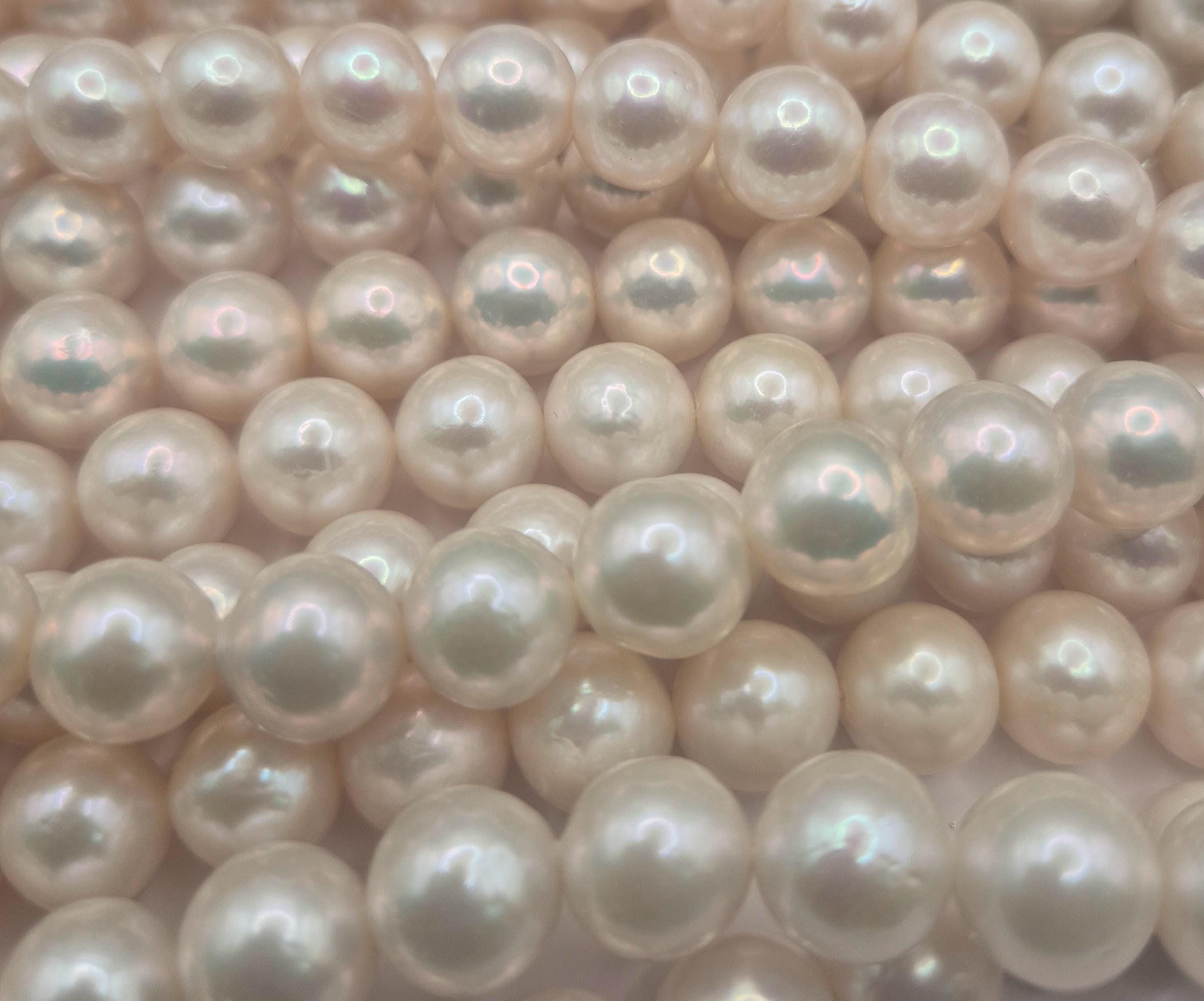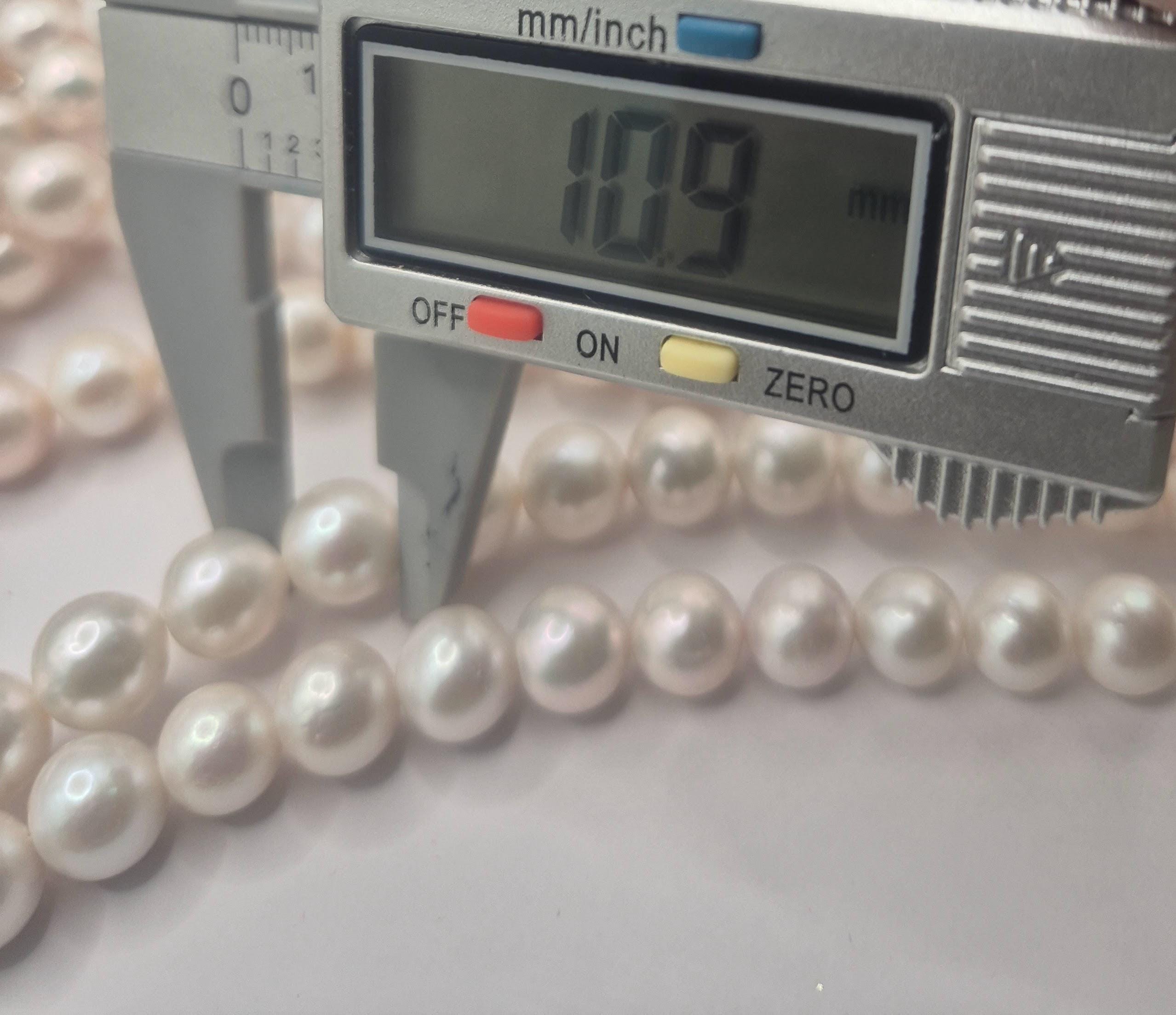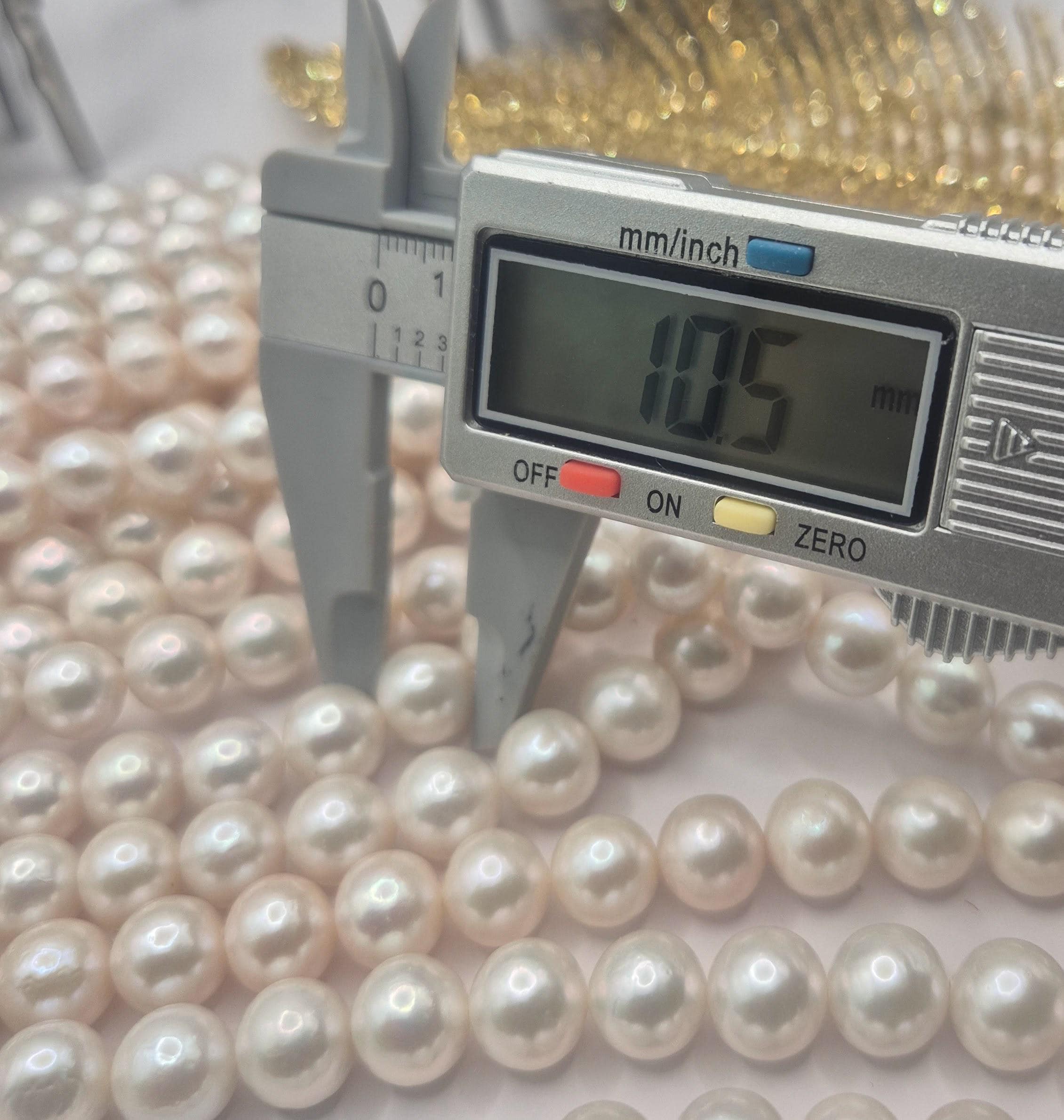 AAAAA 10-11mm ivory almost round freshwater pearls. Each strings is 14.5 inches. Very High luster.