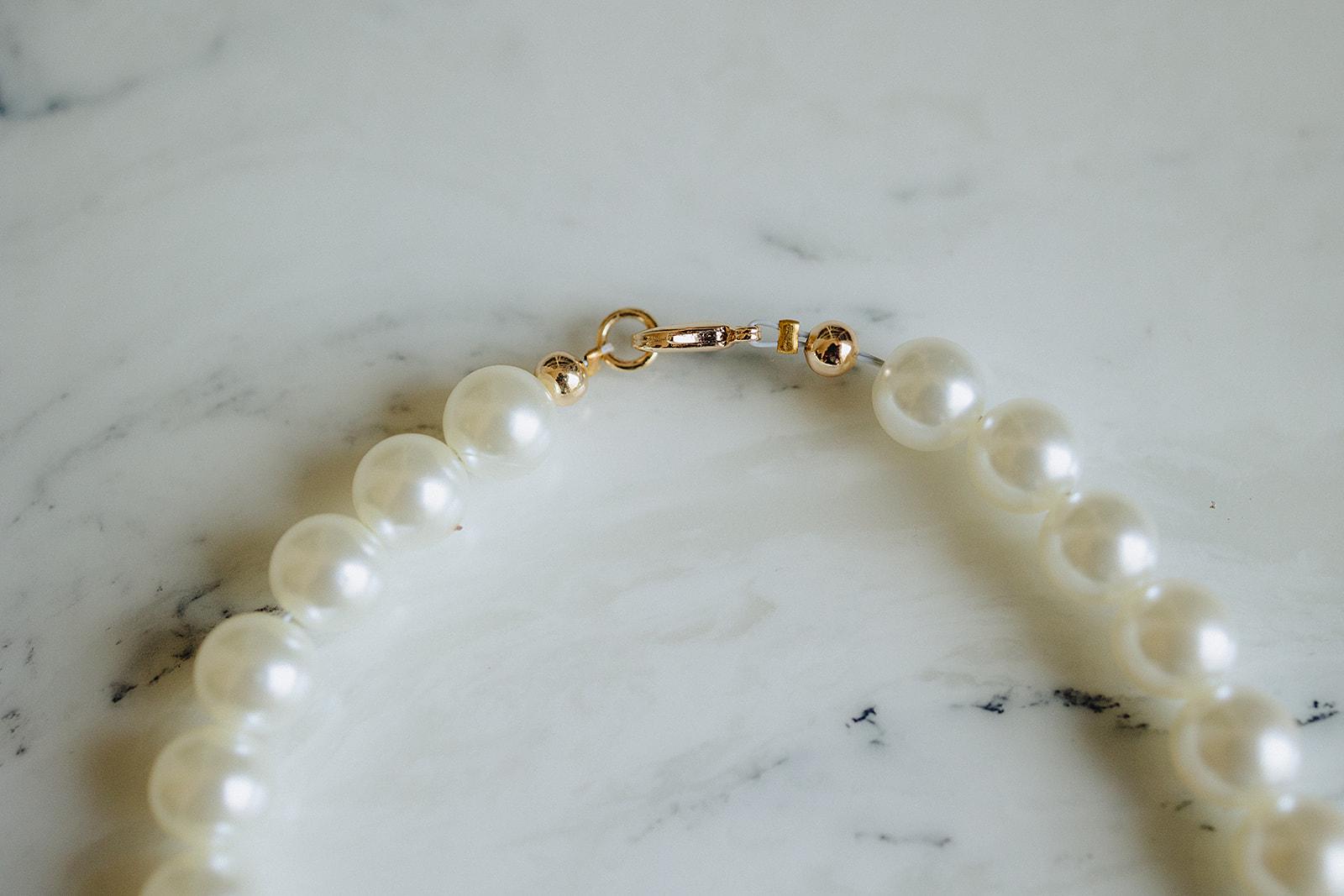 Each pearl, perfectly round and smooth, is a soft, pearly ivory. and the necklace clasps with a small, gold-plated lobster clasp, adding an extra touch of refinement.