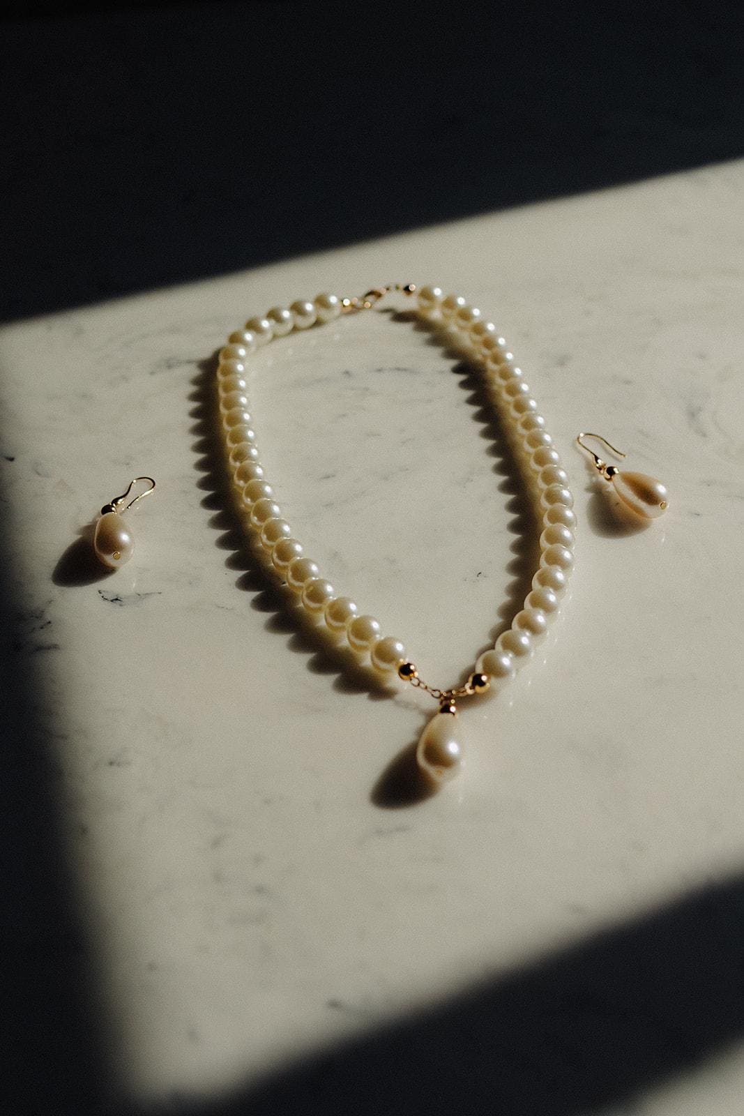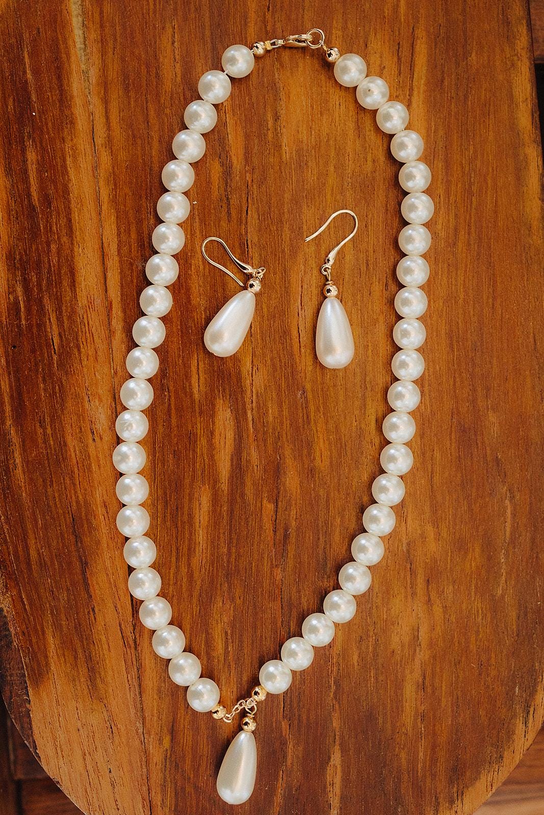 This gorgeous pearl necklace set gleams with elegance and sophistication.