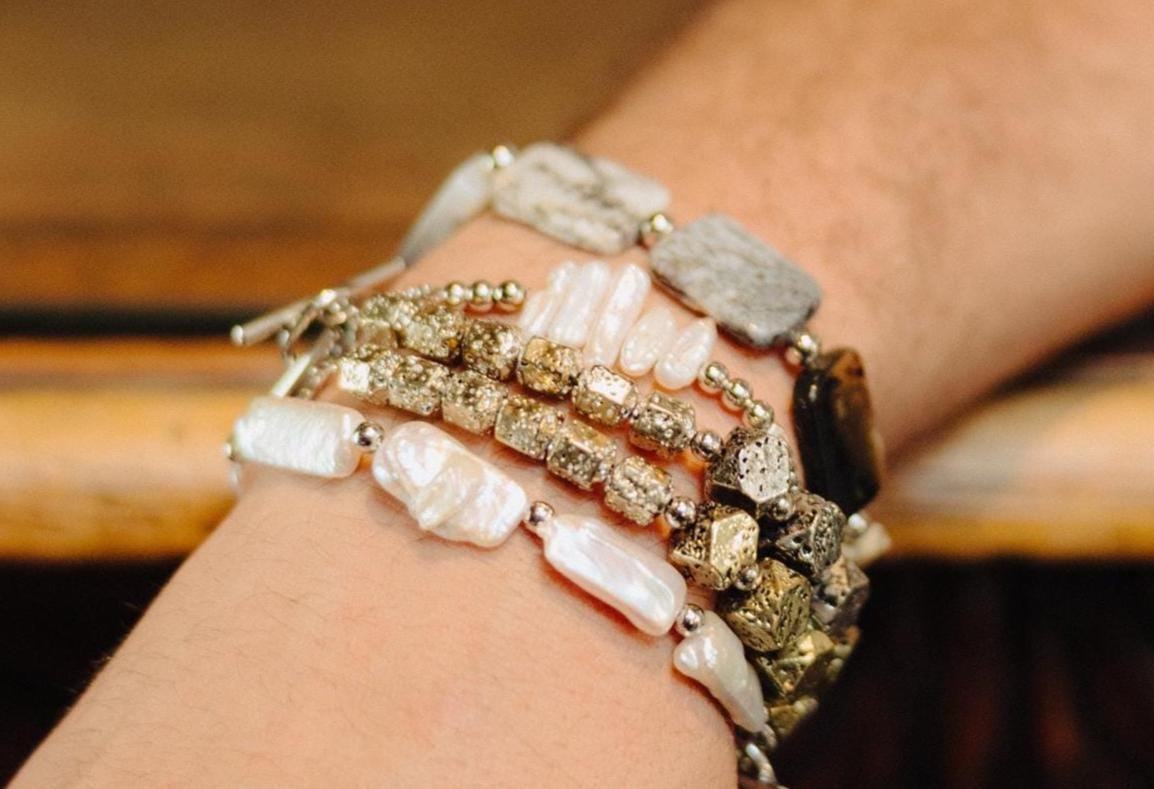 This stunning Baroque Pearl Bracelet is designed to fit any wrist size with its adjustable feature. Perfectly crafted for men, this bracelet combines timeless elegance with a contemporary touch, making it an ideal gift for dads, husbands, or any man who appreciates unique jewelry.