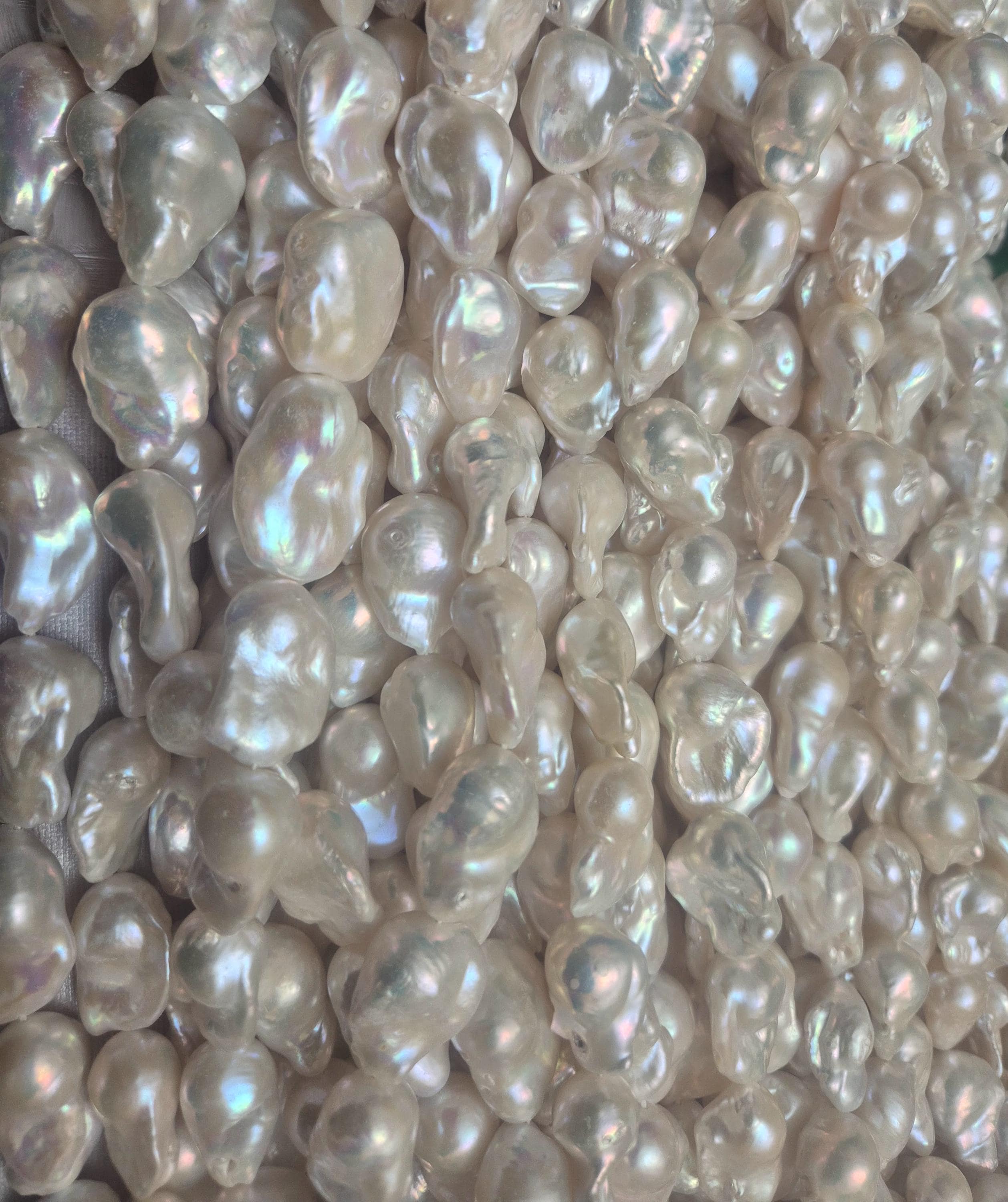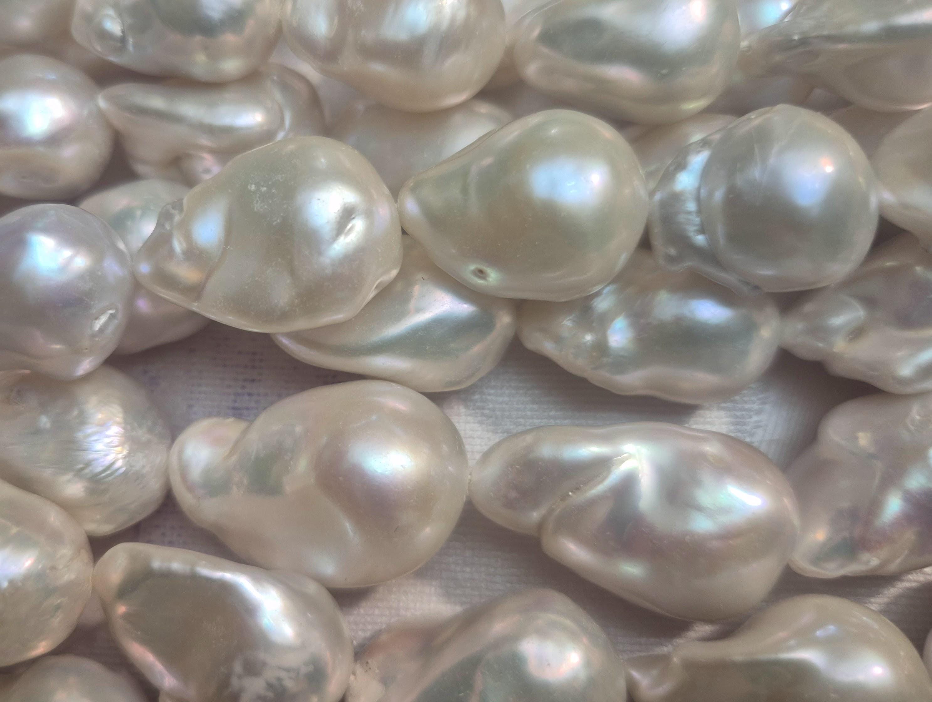 AAA+ Baroque pearl beads, for crafting your jewelry designs to a new level of elegance. Measuring between 20-22mm in length and 12-14mm in width, these high-luster pearls feature unique organic shapes that make each bead a one-of-a-kind focal point in necklaces, pendants, and earrings. As the ideal choice for both experienced artisans and curious beginners, these luxurious baroque pearl beads not only add a touch of opulence to your creations but also resonate with the allure of timeless sophistication.