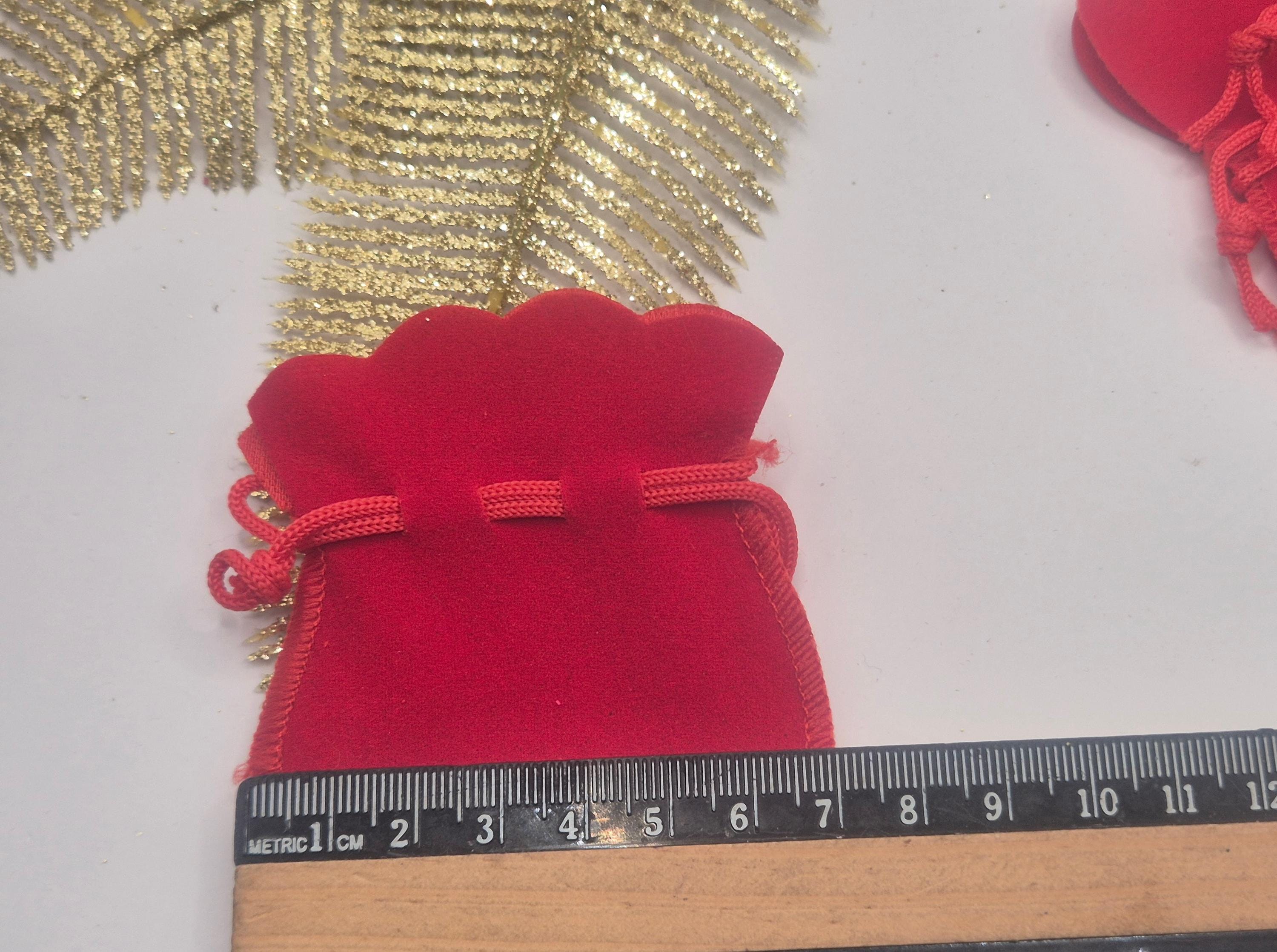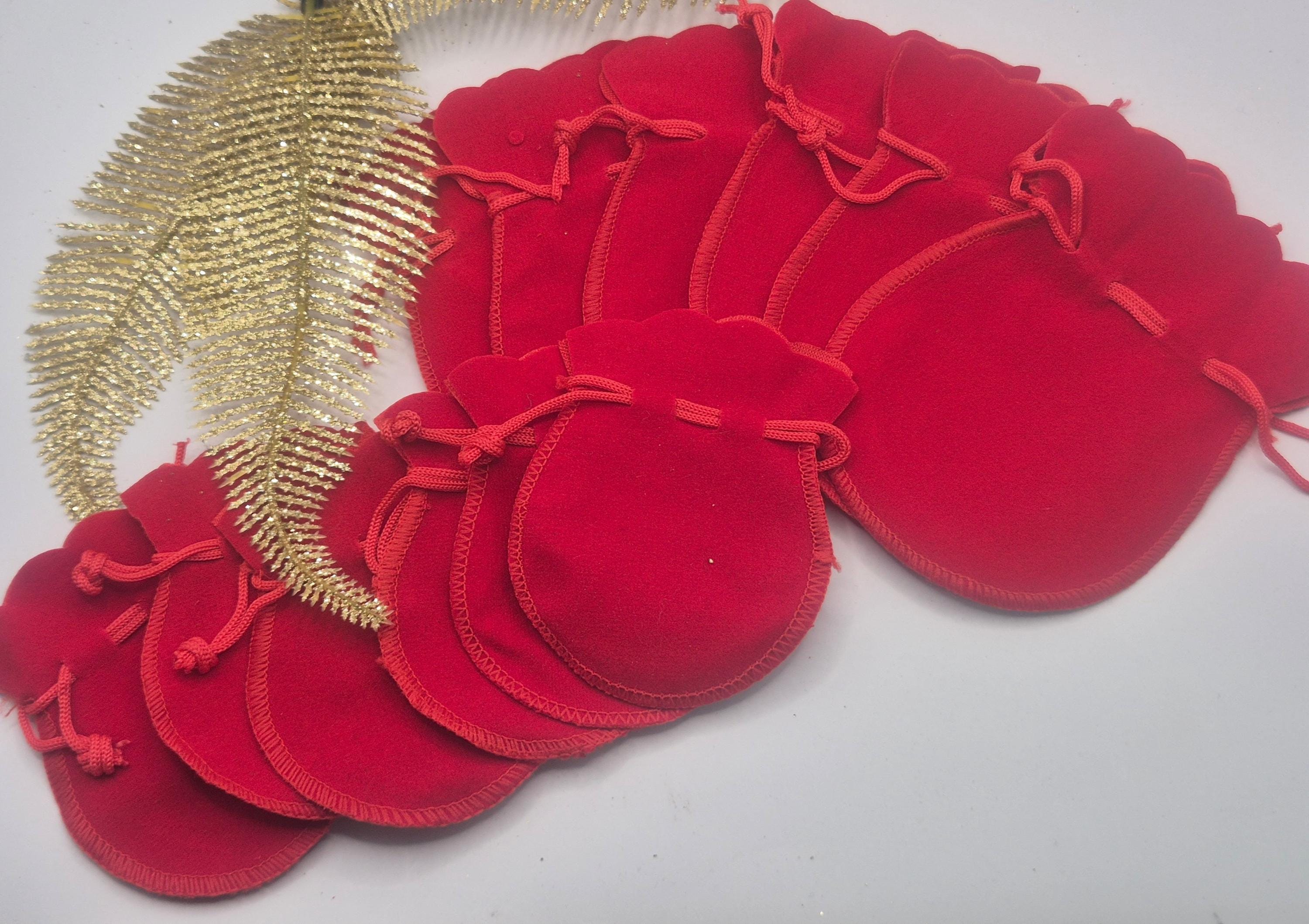 Red small jewelry pouches for small Christmas gifts.