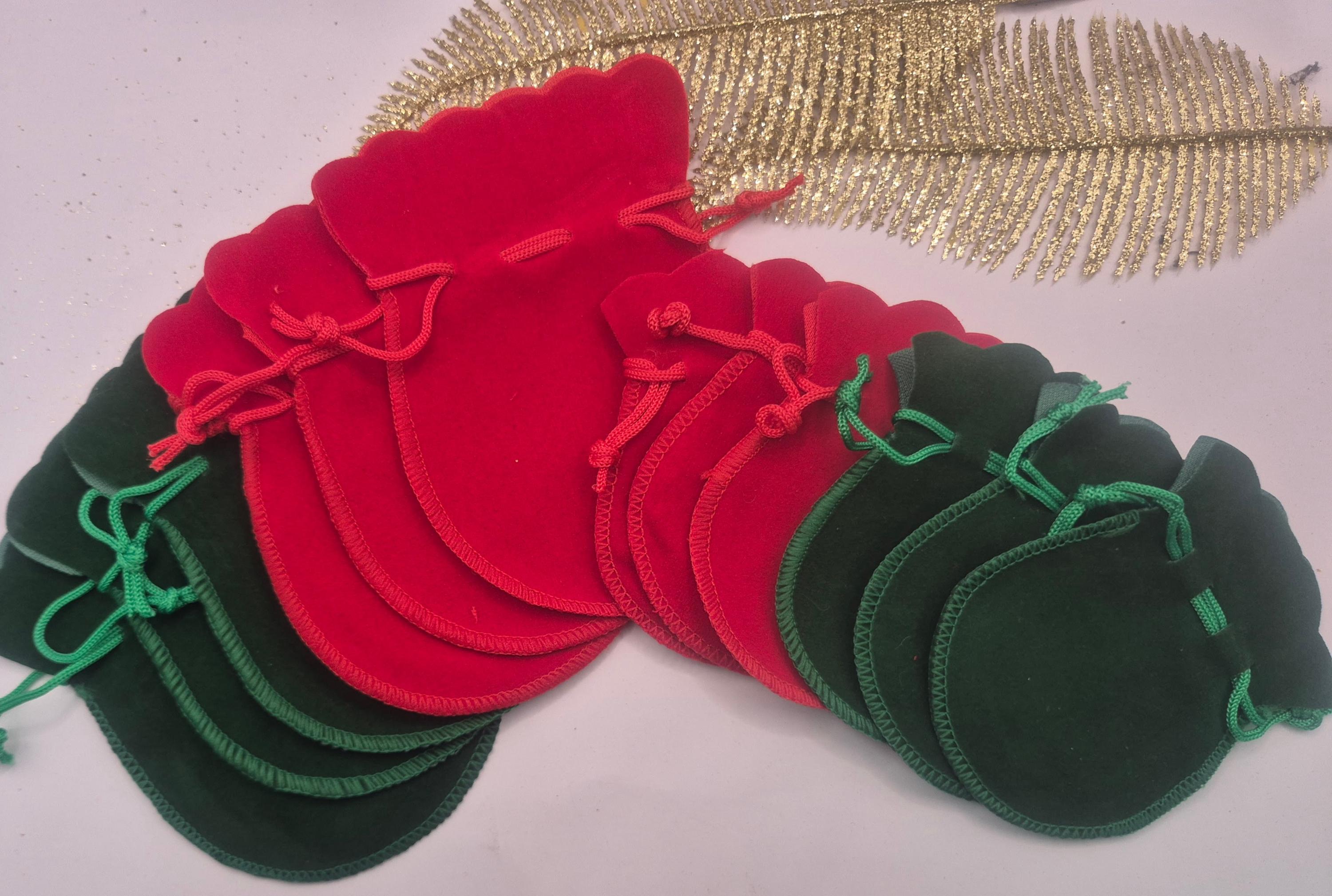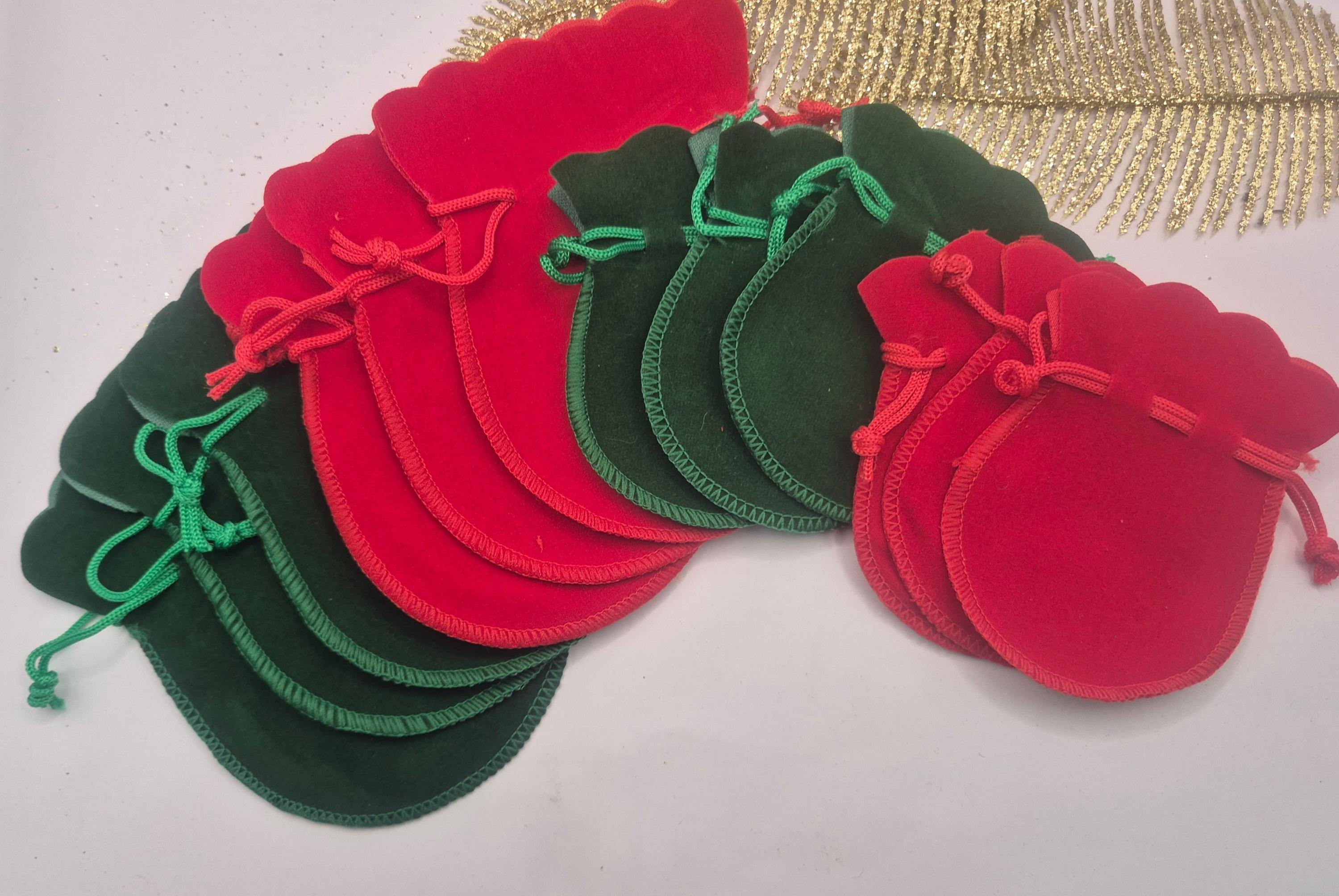 Christmas Velvet Jewelry Bags: Favor Pouches (Pack of 12 with 2 sizes) Red and or green. Festive colours.