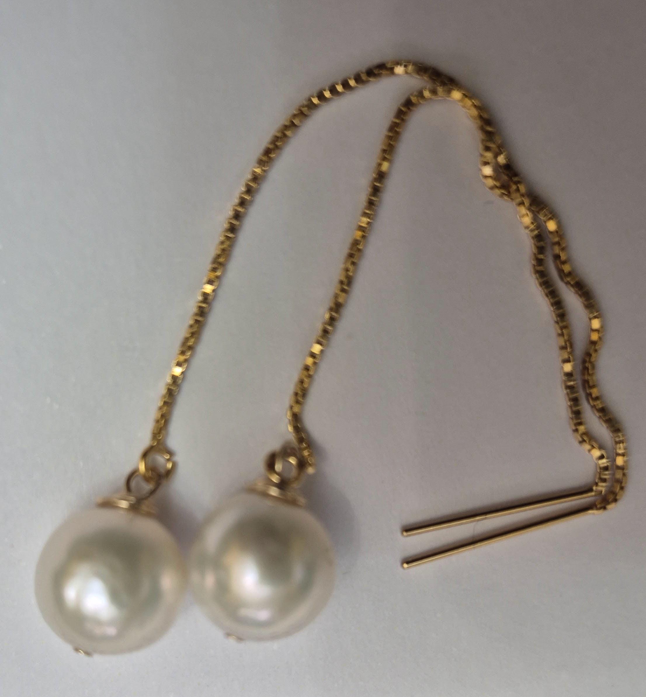 Designed with high-quality gold-filled findings, these earrings are durable and hypoallergenic, ensuring comfort for all-day wear. The lustrous pearls have a beautiful shine and smooth surface, making them ideal for special occasions like weddings, bridesmaids gifts, or holiday celebrations. Available as classic hoops or as elegant ear threader earrings, you can choose the style that best suits your personal taste.